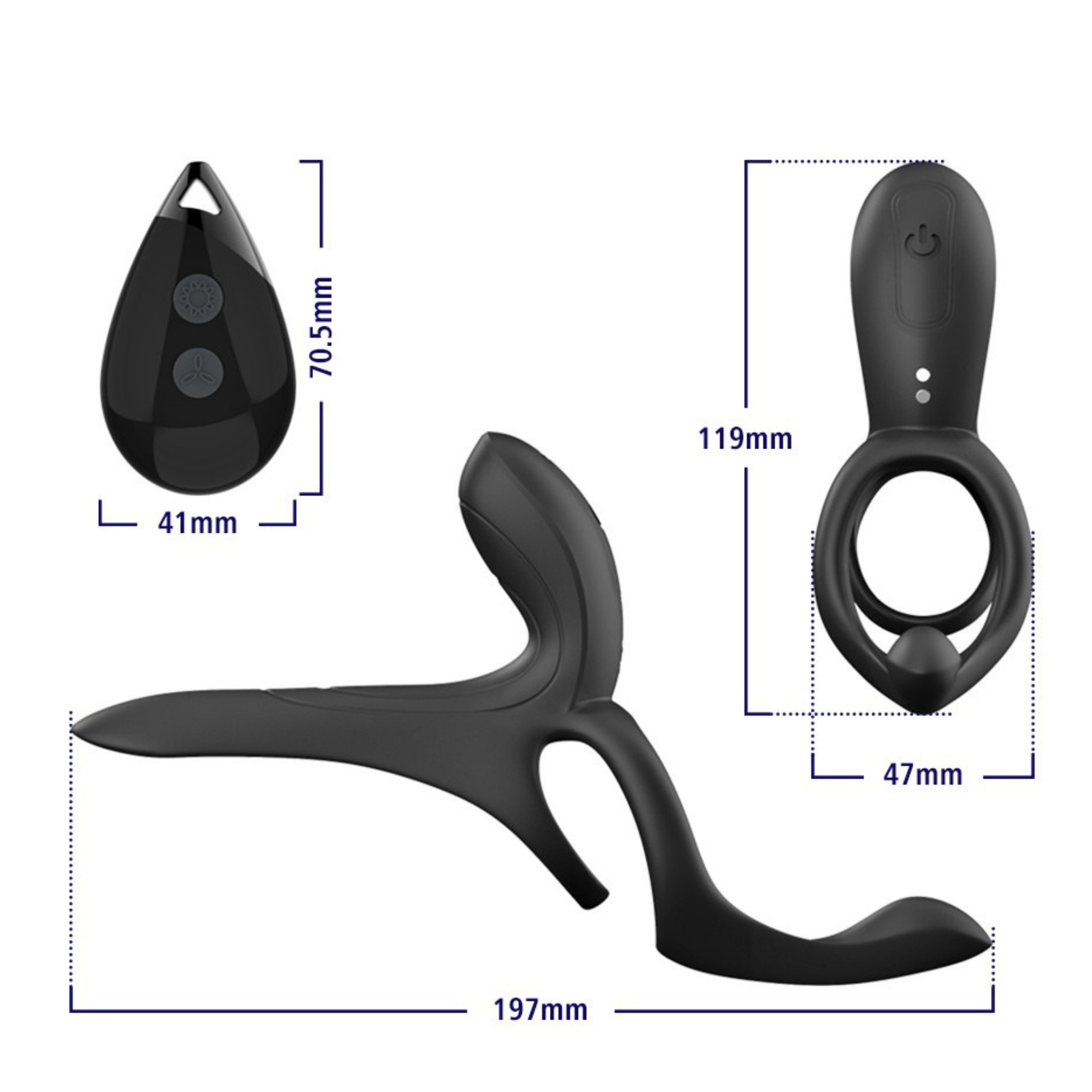 Wibrująca nakładka pogrubia penisa, ale dzięki otwartej konstrukcji nie tłumi doznań – żołądź pozostaje odsłonięta. Uchwyt na jądra zapewnia dodatkową stymulację i stabilność, a pilot daje pełną kontrolę nad rytmem i intensywnością.